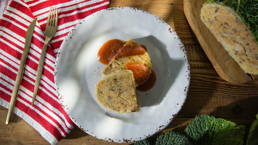 wieniec mięsny w miodzie pitnym pieczony podany z placuszkami ziemniaczanymi i z zasmażaną młodą kapustą z kopremwieniec mięsny w miodzie pitnym pieczony podany z placuszkami ziemniaczanymi i z zasmażaną młodą kapustą z koprem